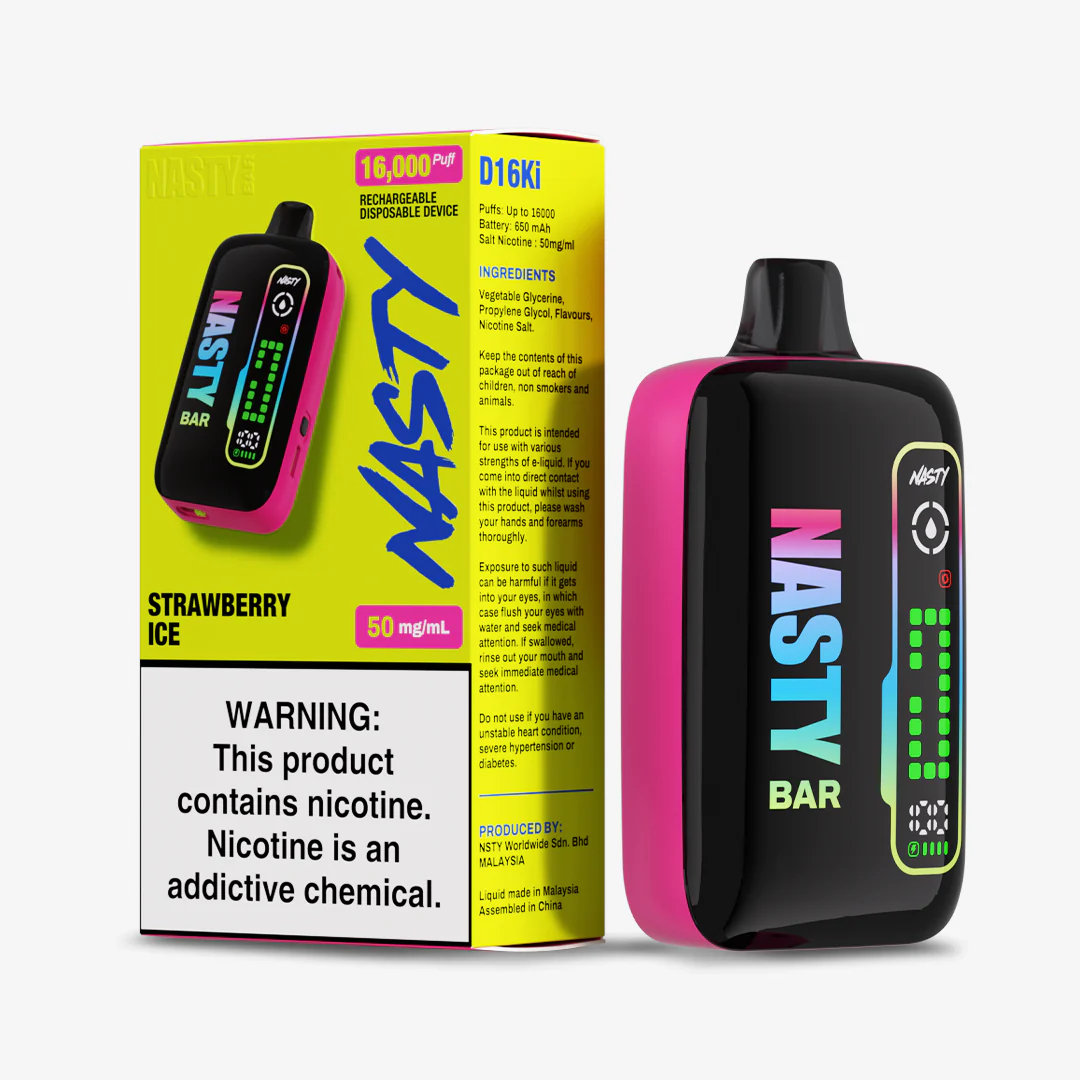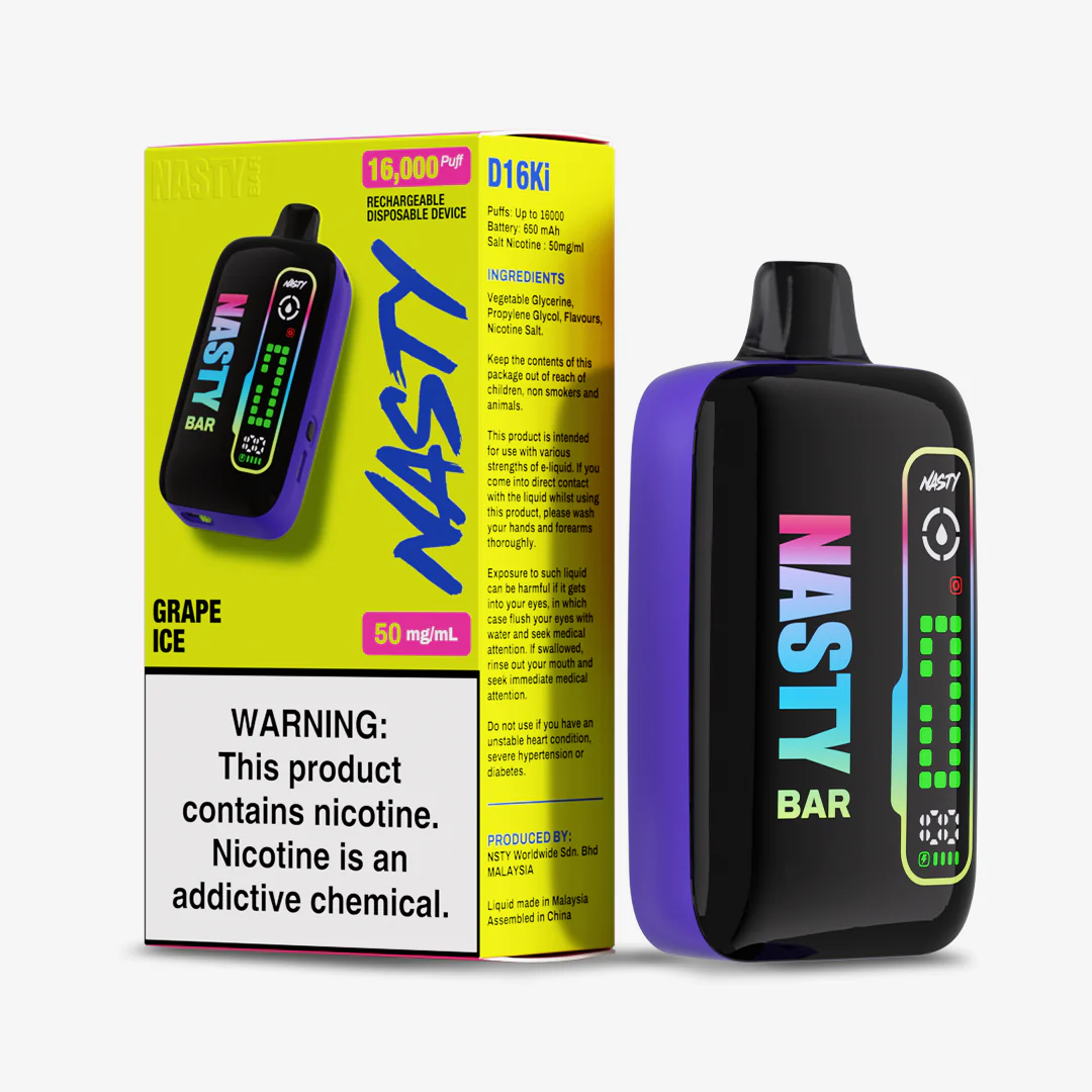 NASTY BAR D16Ki est un dispositif jetable rechargeable de sel de nicotine qui offre jusqu’à 16 000 Puffs de saveur pure et satisfaisante.