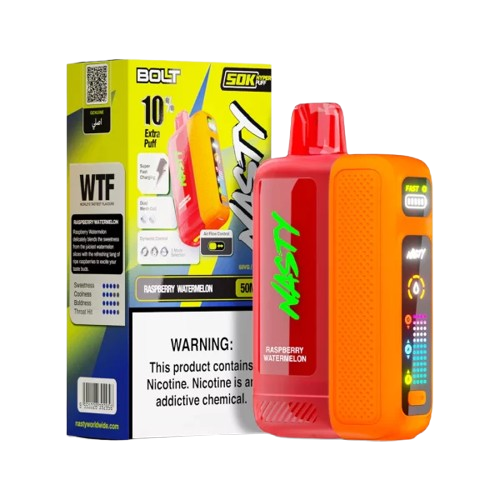 NASTY BOLT 50K est un dispositif jetable (disposable) rechargeable, conçu pour offrir une très longue autonomie et des performances stables. Il se distingue par ses modes dynamiques, son airflow configurable et son système de double coil mesh pour un goût intense et une vape fluide.