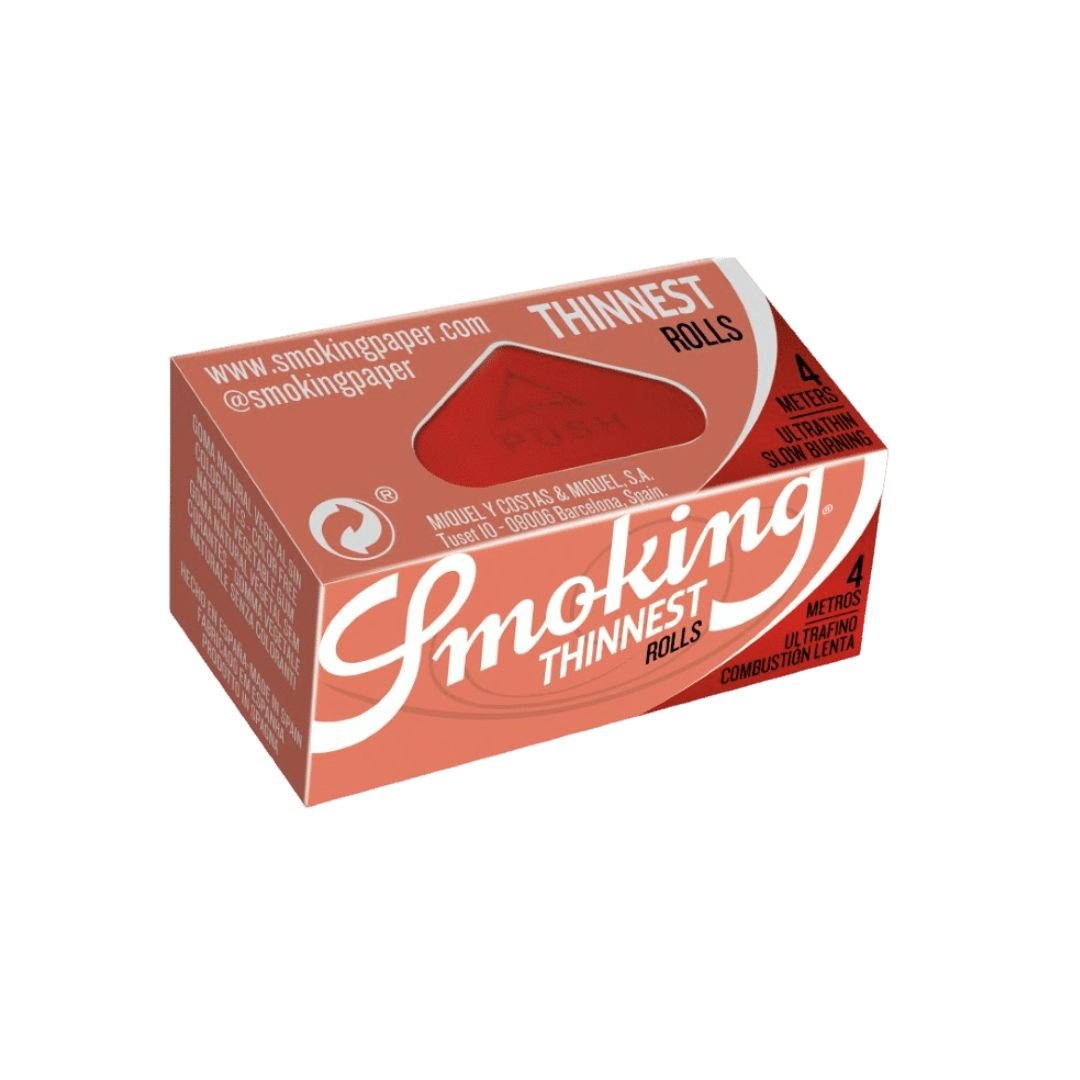 Le Smoking Thinnest Rolls est le papier le plus fin jamais conçu par la marque, avec seulement 10 g/m². Presque transparent, il offre un roulage léger et pur.